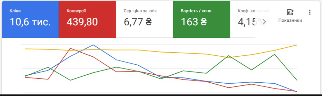 Клієнт звернувся до мене після невдалих спроб працювати з кількома агентствами та фрілансерами. Завдання було чітке – знизити ціну за ліда та забезпечити стабільний потік клієнтів при збереженні цільового рівня СРА.